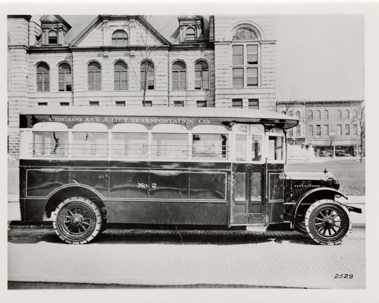 View of a GMC bus for the Chicago and Joliet Transportation Co.. Handwritten on back: "GMC."