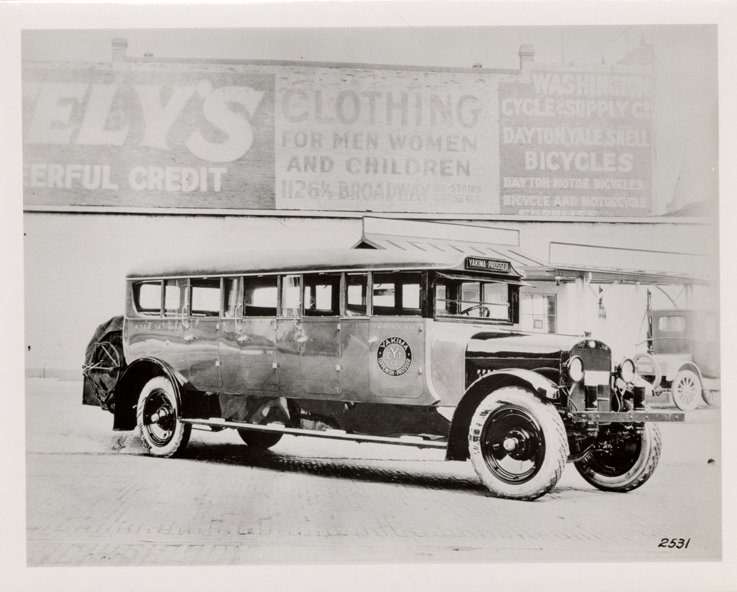 View of a GMC bus for the EYT Co.. Handwritten on back: "GMC."