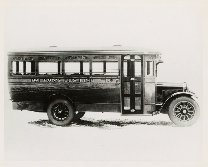 View of a GMC bus for Dalton's Bus Line. Handwritten on back: "GMC."