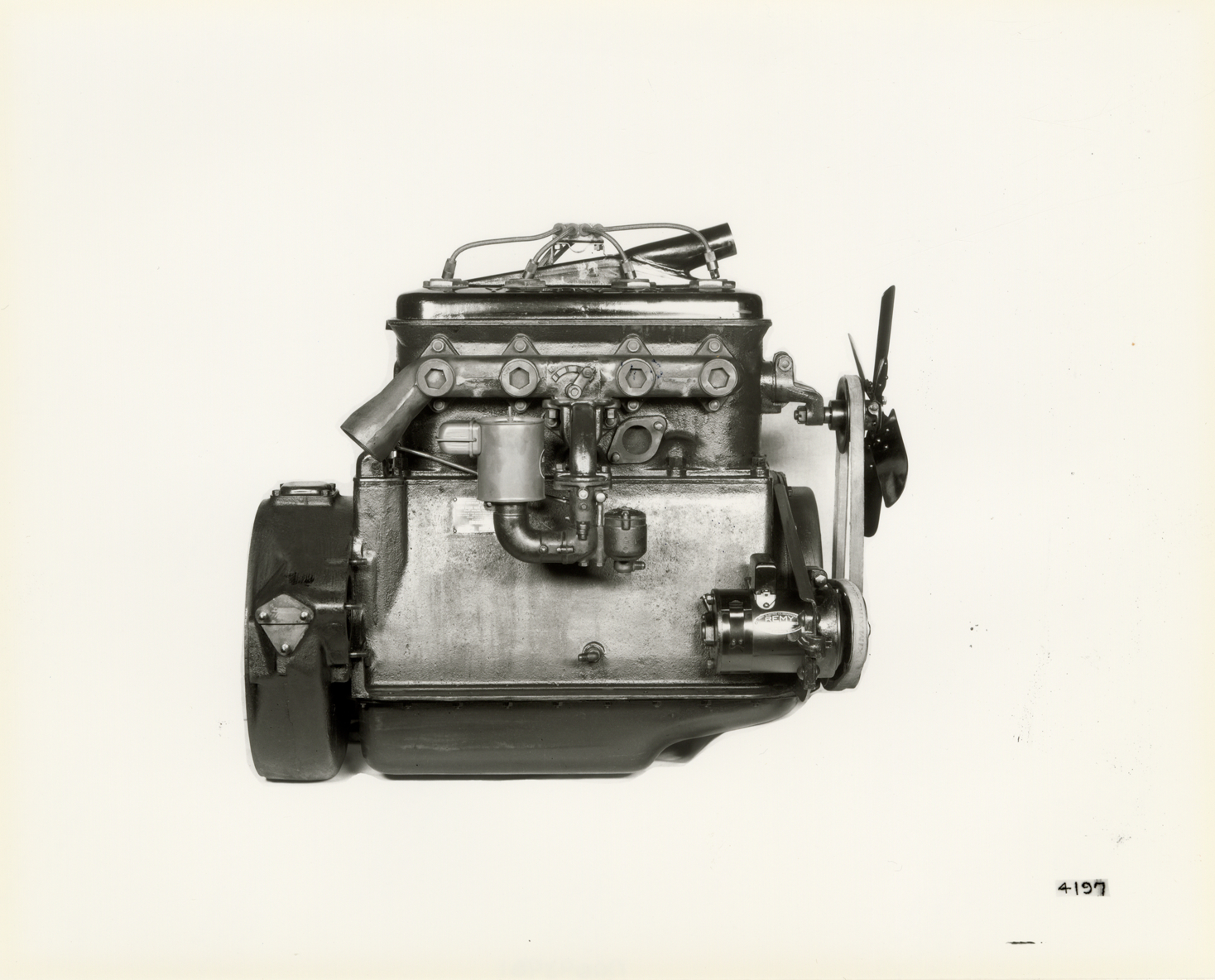 View of a GMC truck engine. Handwritten on back: "GMC."