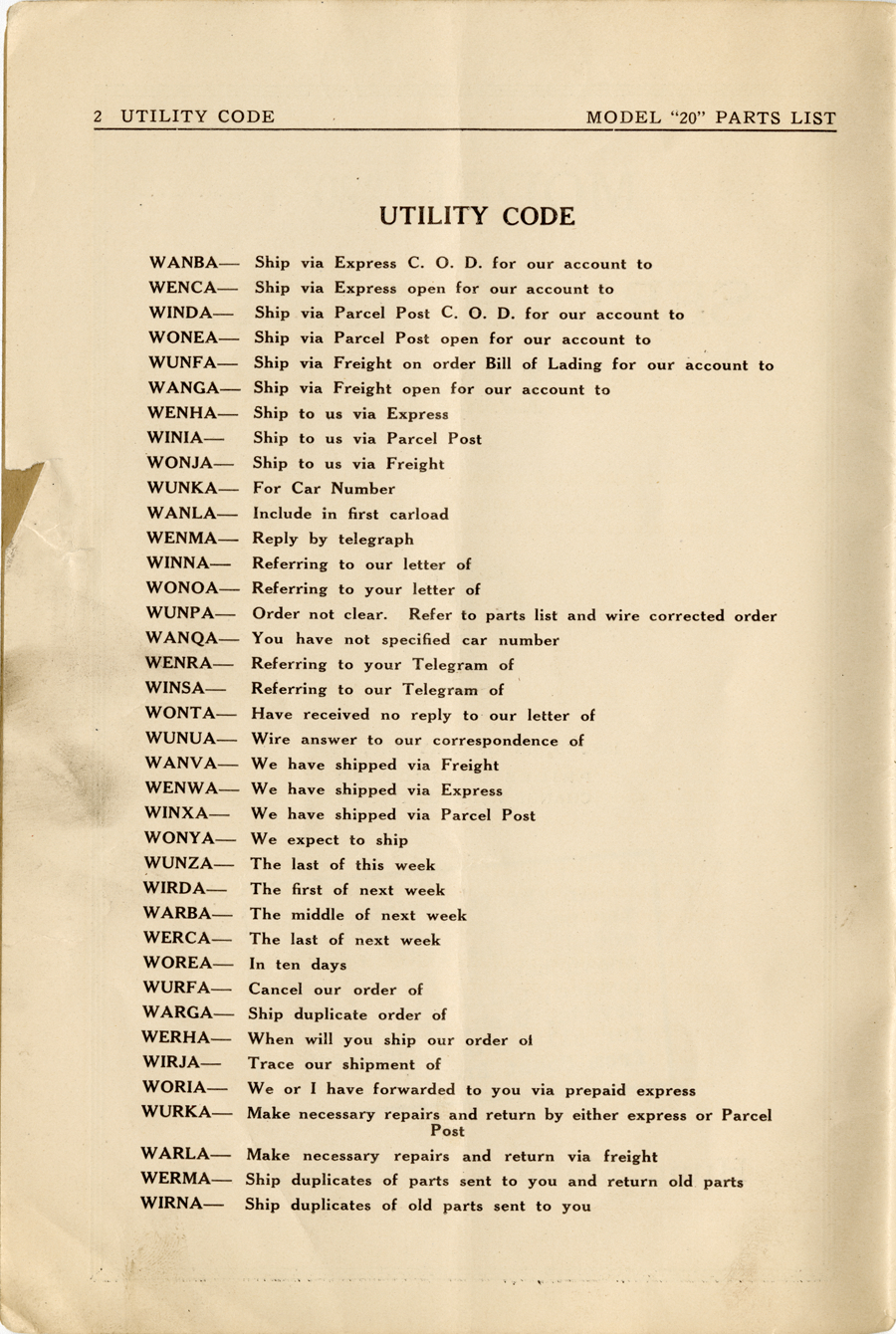 Model "20" service parts list : issued as of May 1st, 1916 : Hupp Motor Car Corporation / [Hupp Motor Car Corporation]. Includes illustrations.