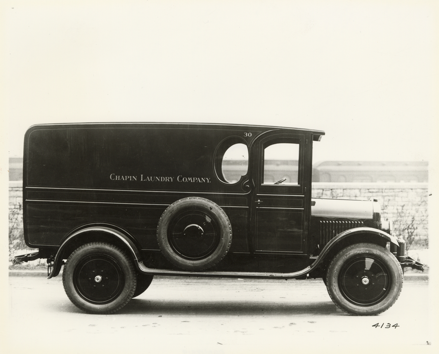 View of a GMC truck for the Chapin Laundry Company. Painted on side of truck: "Chapin Laundry Company." Handwritten on back: "GMC."