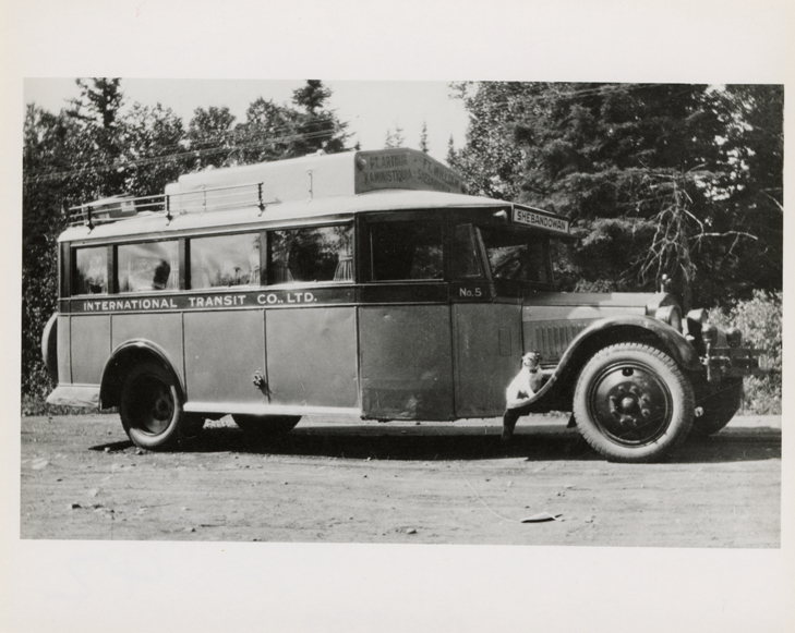 View of an International Transit Co. bus. Handwritten on back: "International Transit."