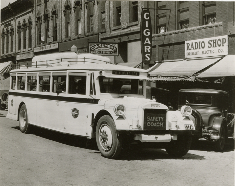 View of a Jefferson Transportation Company bus. Handwritten on back: "Jefferson Transportation."