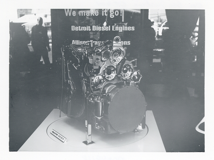 View of a General Motors GT-404 gas turbine at Transpo '72. Handwritten on back: "GM gas turbine, GT 404, Transpo 72, 5-27-72."