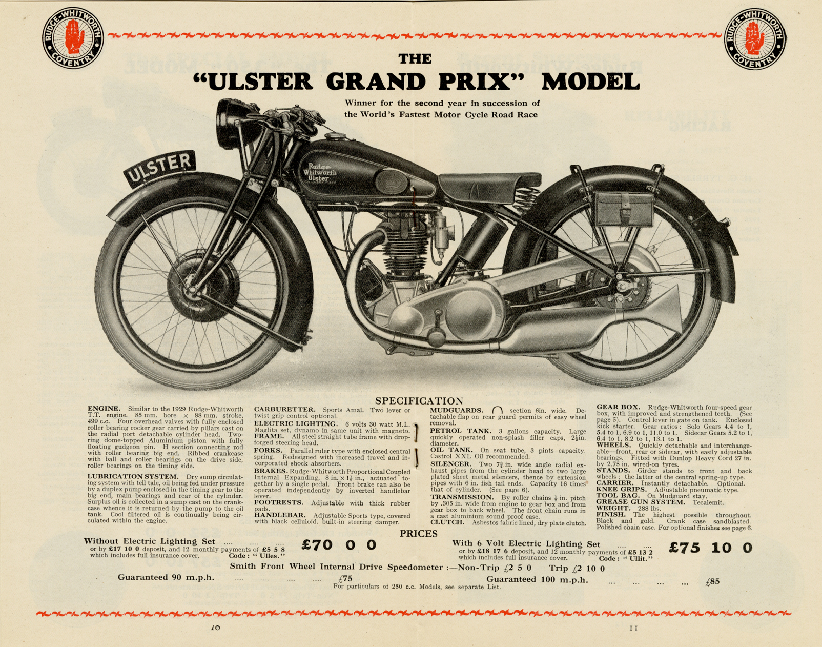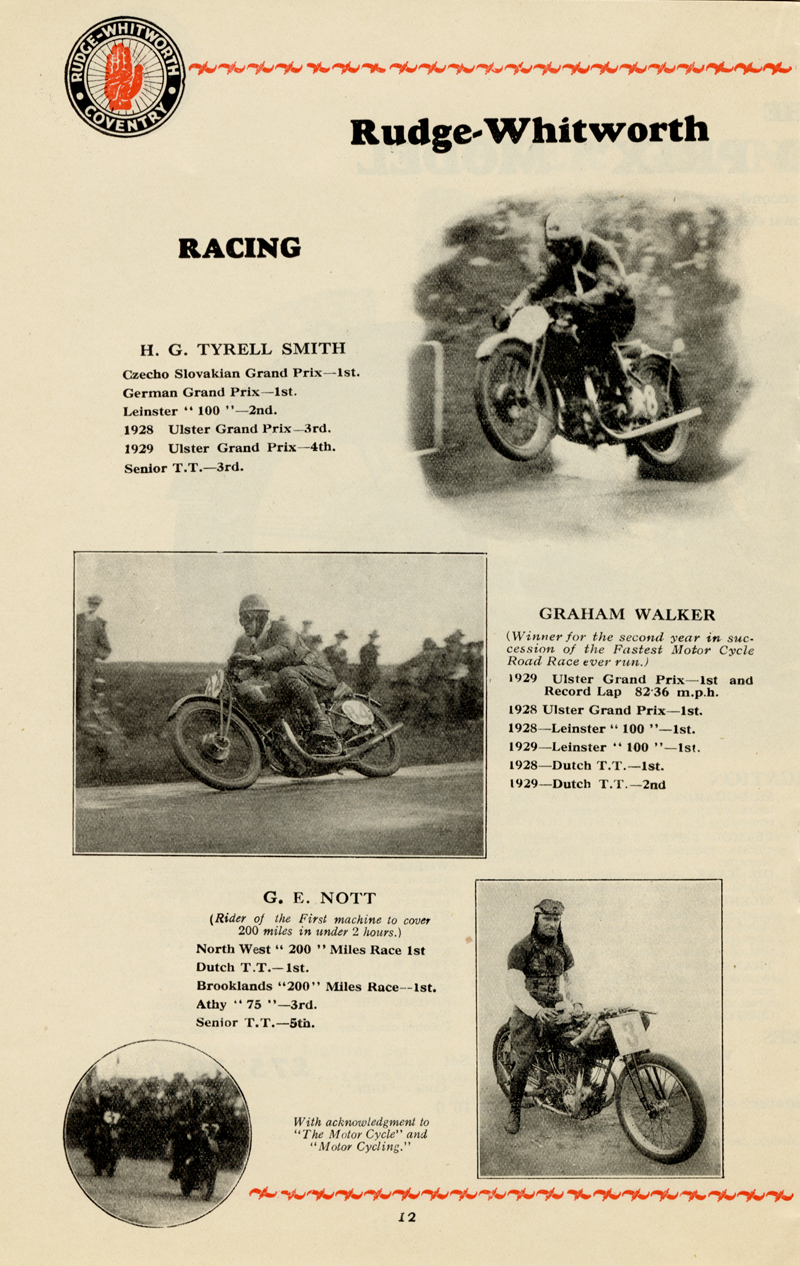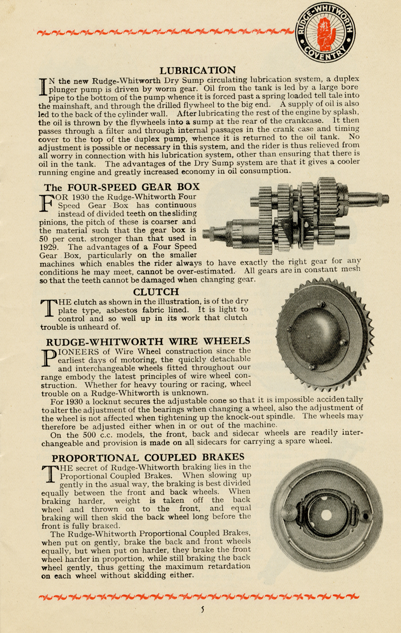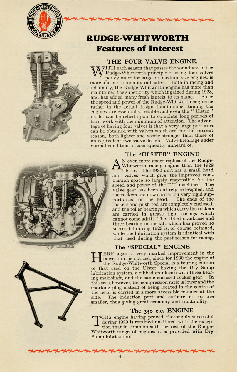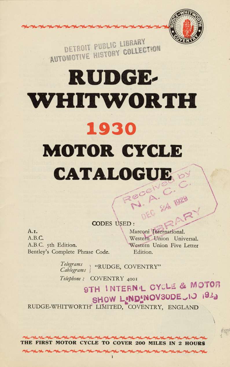 Rudge-Whitworth 1930 motor cycle catalogue / Rudge-Whitworth Limited. Cover title: Rudge-Whitworth motor cycles 1930. Includes illustrations, specifications and prices.