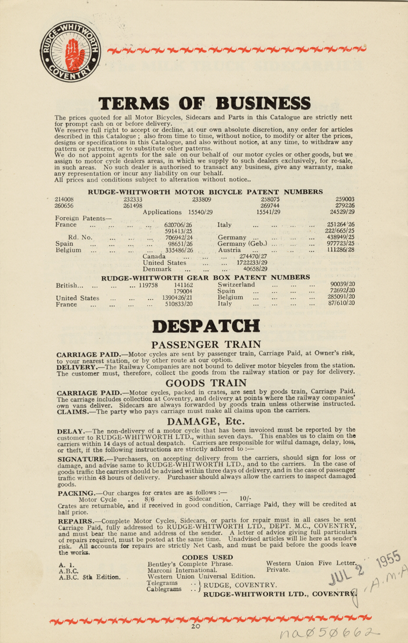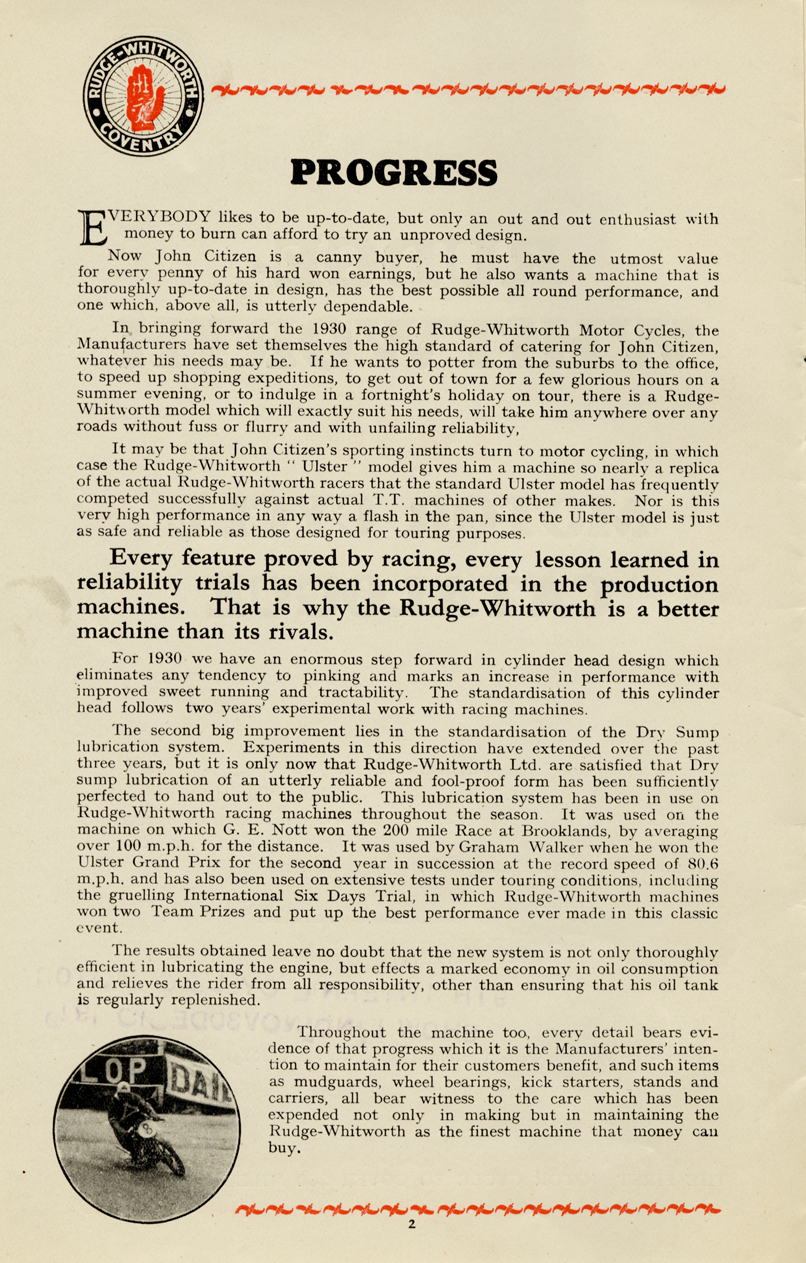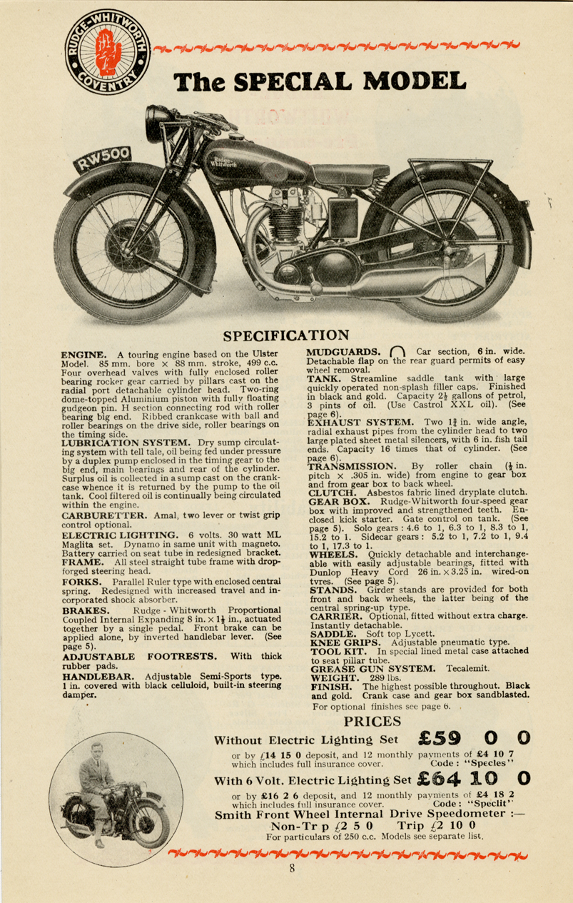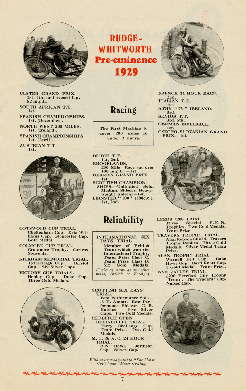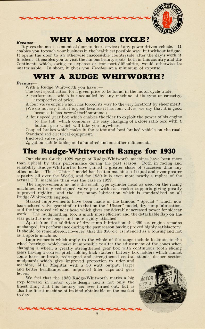Rudge-Whitworth 1930 motor cycle catalogue / Rudge-Whitworth Limited. Cover title: Rudge-Whitworth motor cycles 1930. Includes illustrations, specifications and prices.