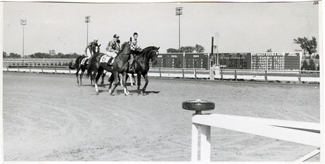 - Part of an album of photographs taken by Cathie Monticelli. Inscribed inside front cover: "My book, at the race track, 1952 by Cathie Monticelli, 1426 Pearson Ave., Ferndale 20, Michigan."