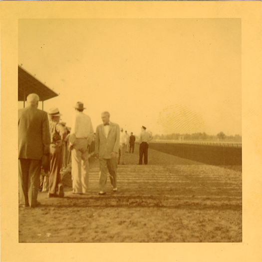 - Part of an album of photographs taken by Cathie Monticelli. Inscribed inside front cover: "My book, at the race track, 1952 by Cathie Monticelli, 1426 Pearson Ave., Ferndale 20, Michigan."
