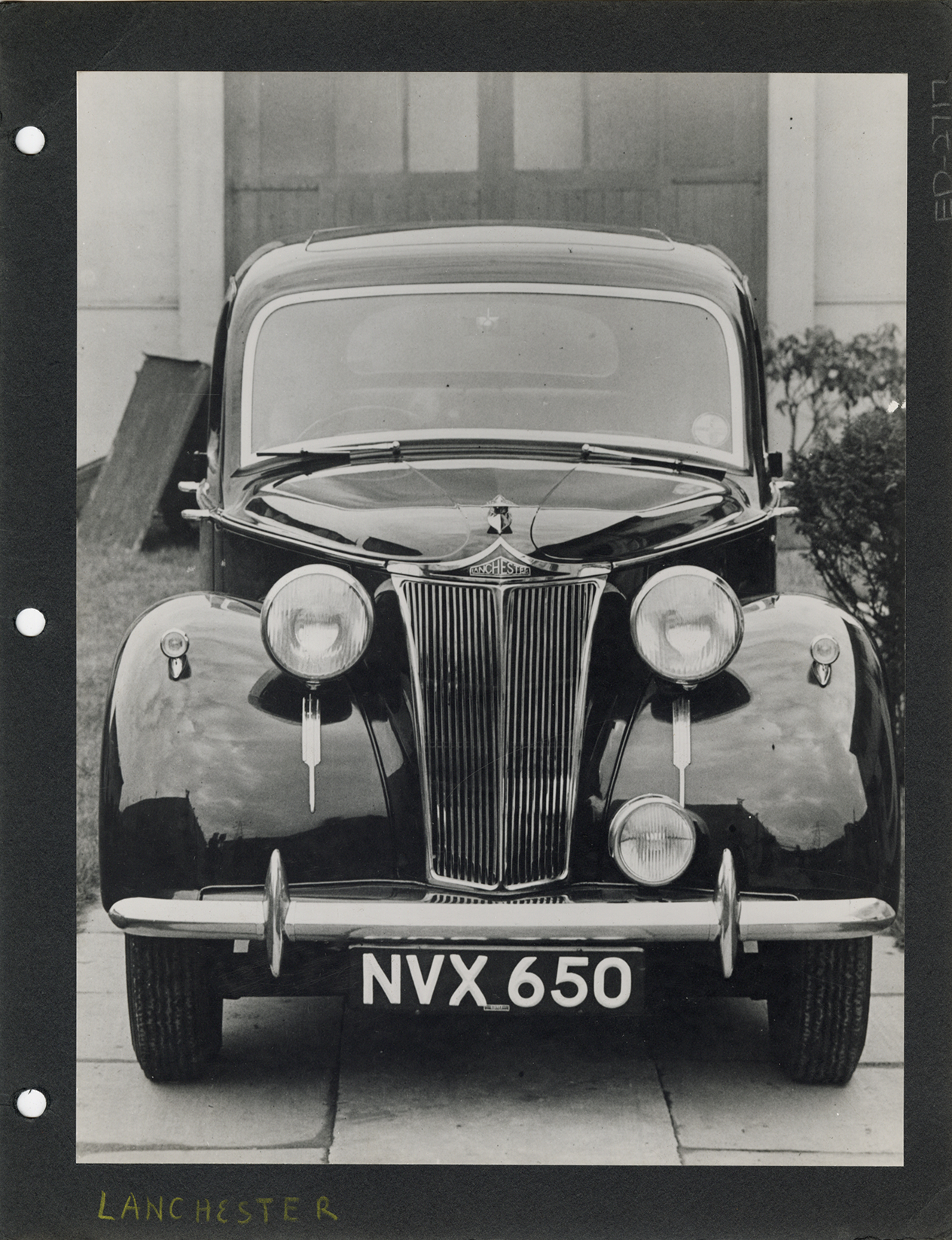 Front view of a Lanchester car. Handwritten on front: "Lanchester."