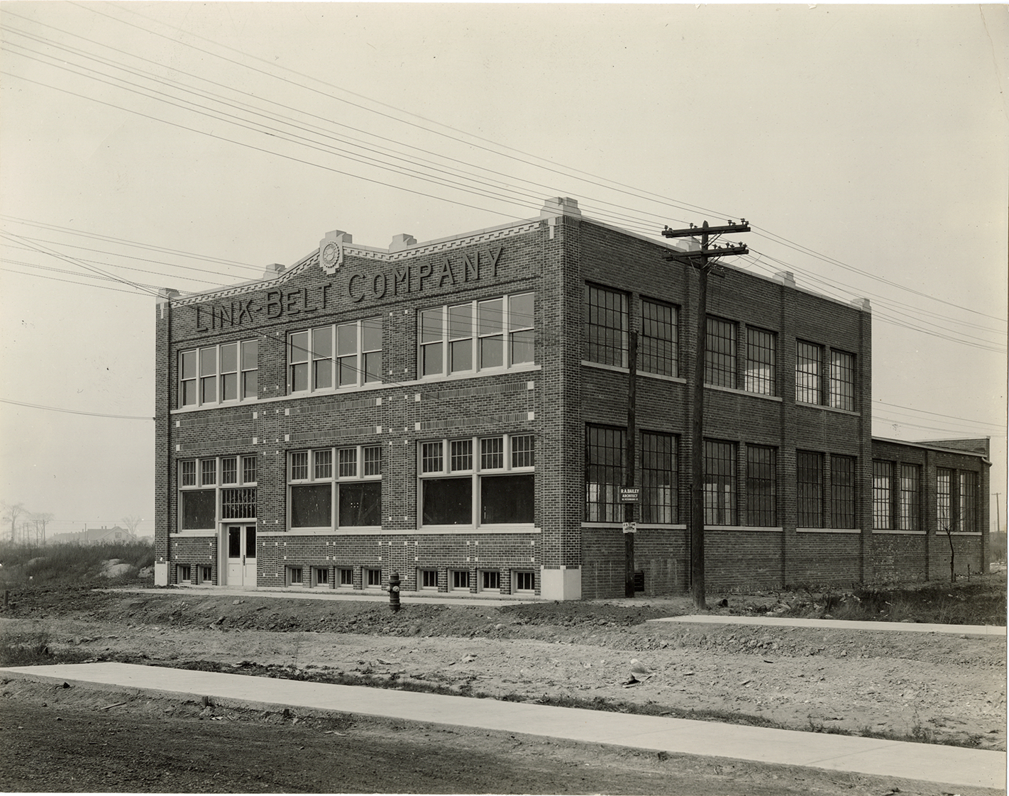 View of the Link-Belt Company. Two-story brick factory building is located at 5938 Linsdale.