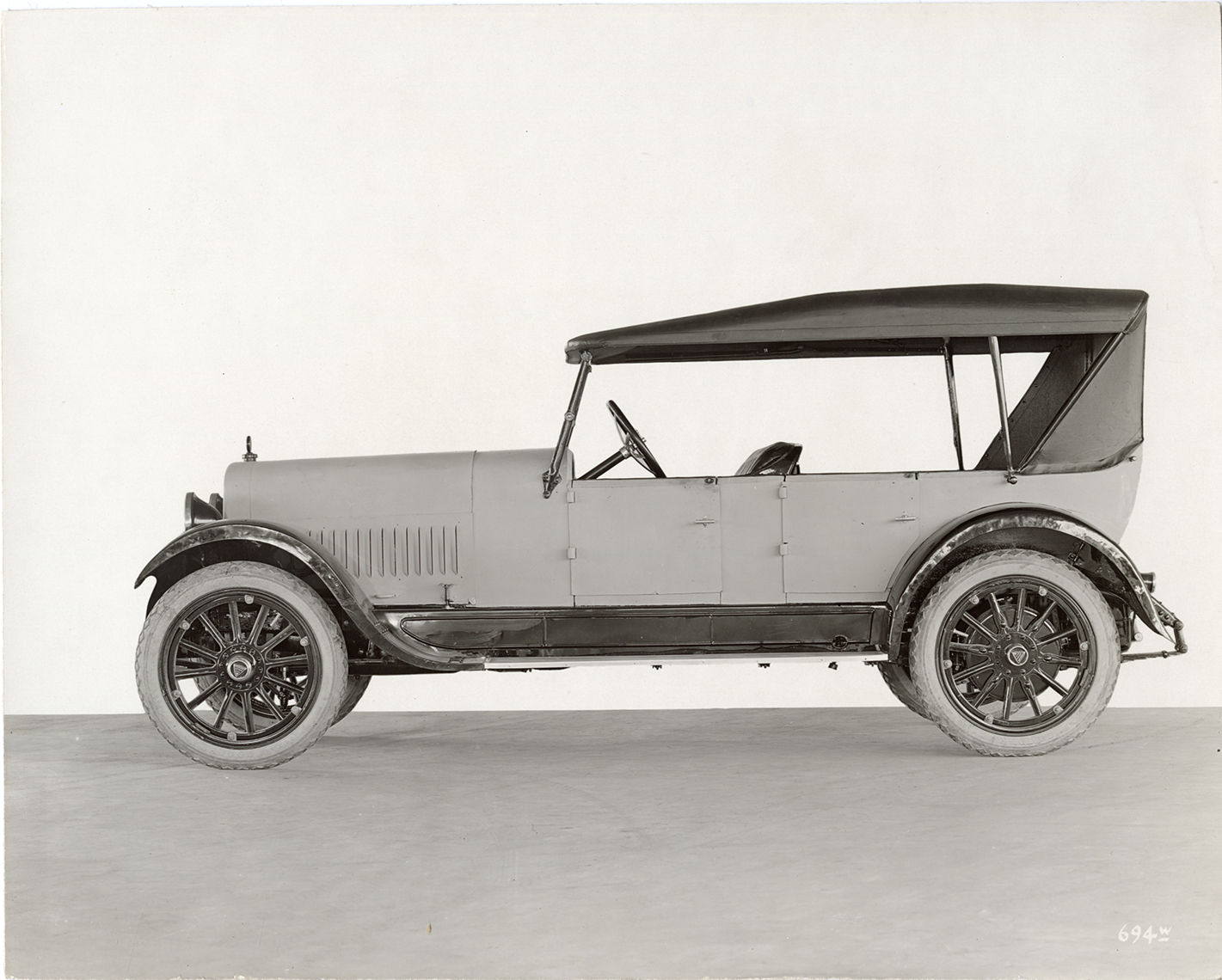 View of a Hudson touring car designed for Stephen Ivan Fekete, chief engineer for Hudson. Stamped on back: "Jeffery White Studio Inc., 410 Marquette Bldg., Detroit, Mich. Commercial photography." Typed on back: "Special jobs. Taken for Mr. Fekete, April 12, 1921."