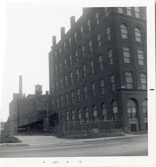 View of the Scotten Dillon Company building. Cars in foreground. Printed on front: "Jul 70."