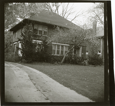 View of a two-story brick house at 3424 Burns, formerly 692, in the Indian Village neighborhood of Detroit, Michigan.