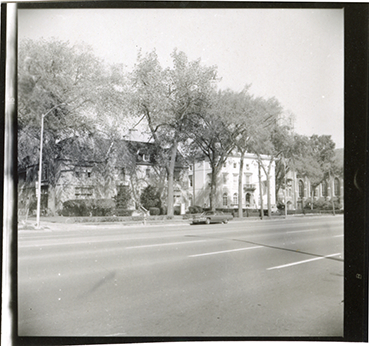 View of James Burgess Book, Jr. house, located on Jefferson Avenue and Burns. Three-story, Renaissance revival style building was designed by Louis Kamper. Original photograph is reversed.