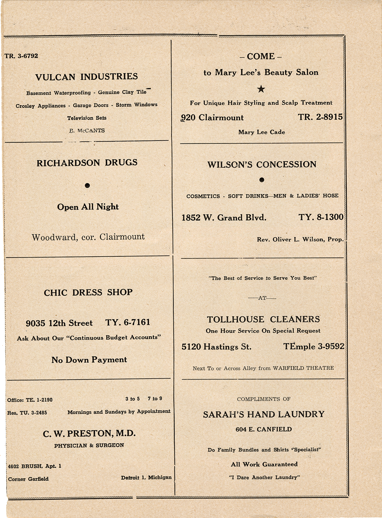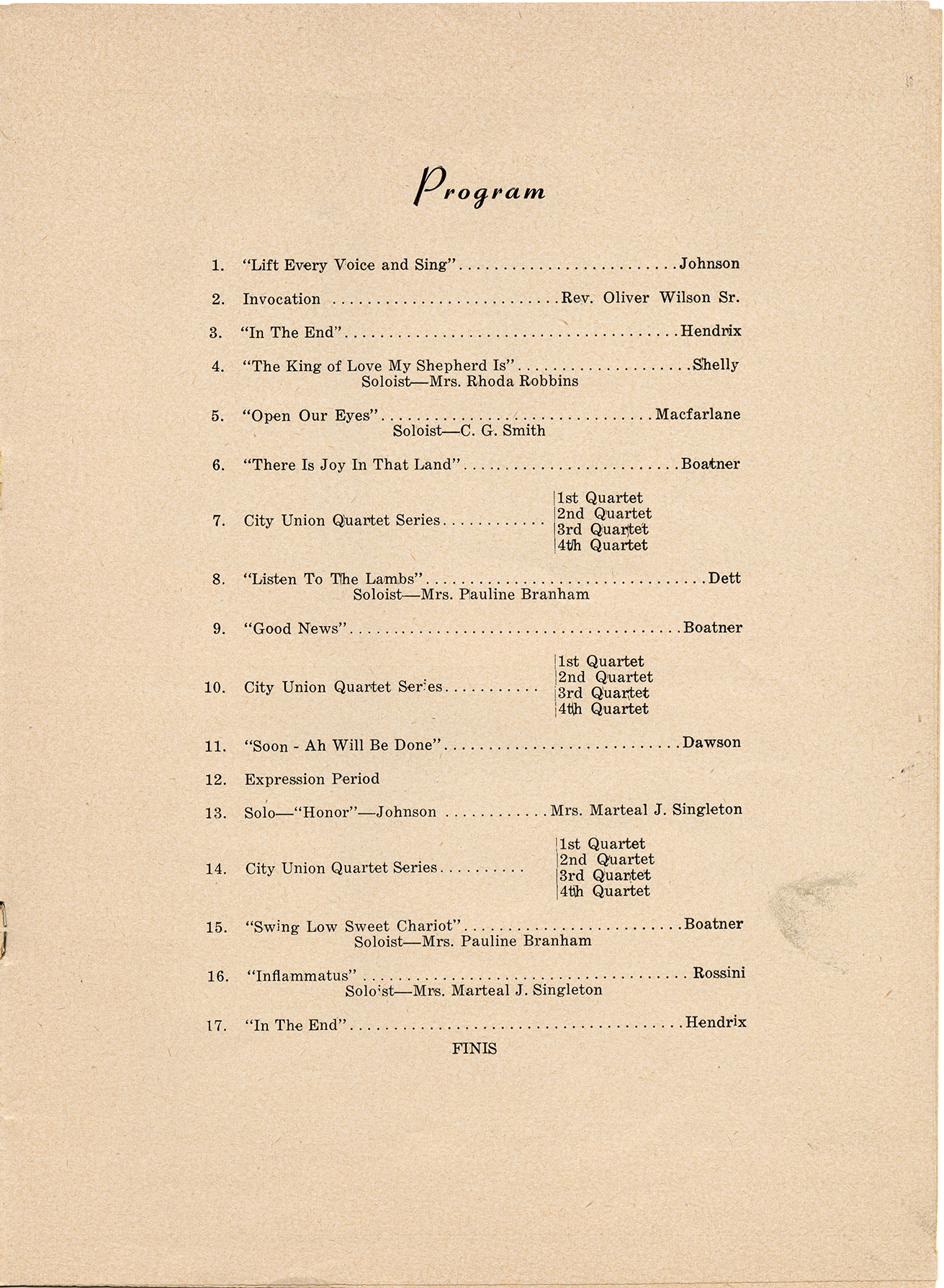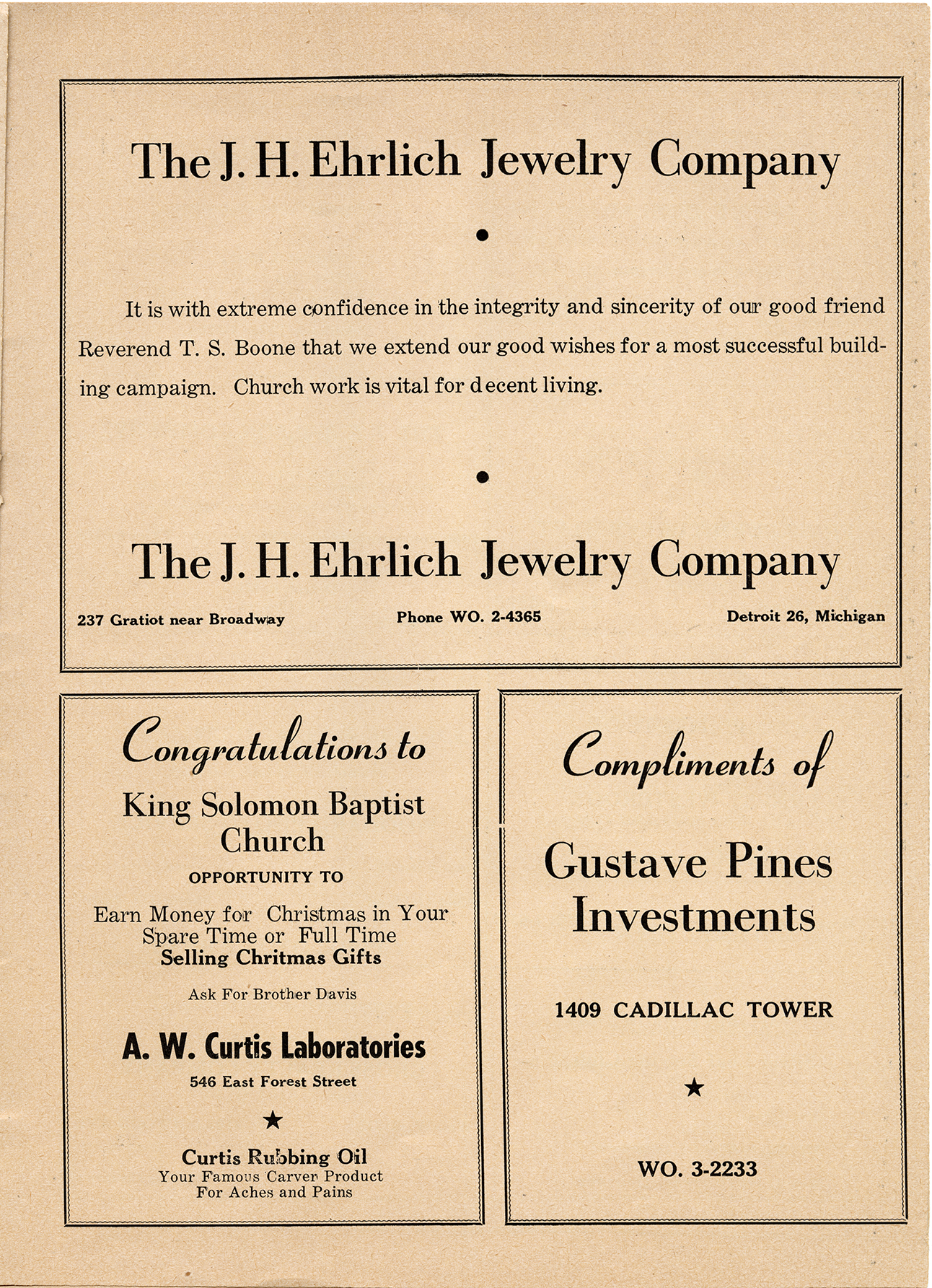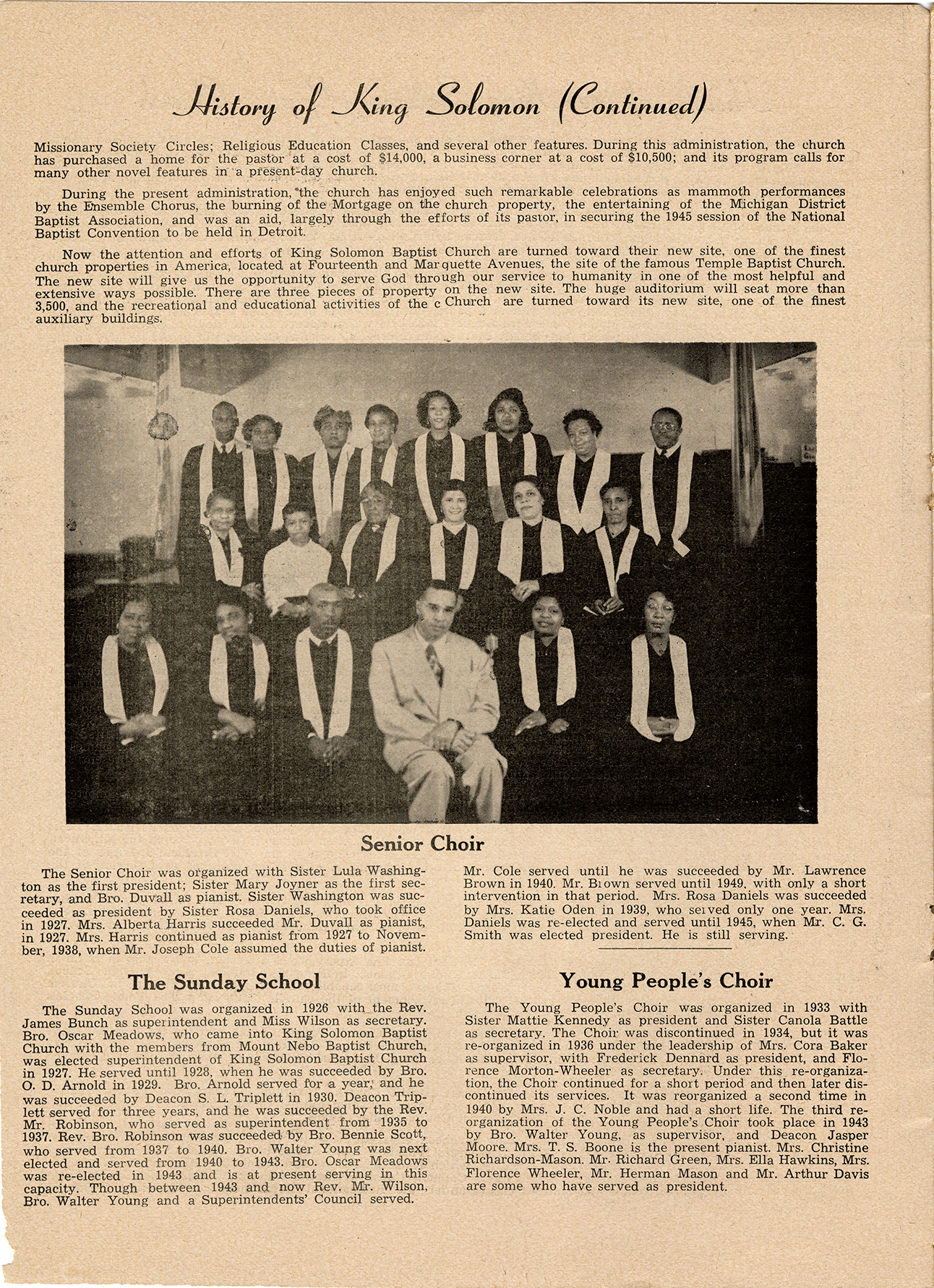Initial program, King Solomon Baptist Church at new site : Fourteenth and Marquette Avenues : Sunday afternoon, November 25, 1951, 3 o'clock : supported by Detroit City Quartet Union : Dr. T.S. Boone, minister / King Solomon Baptist Church.