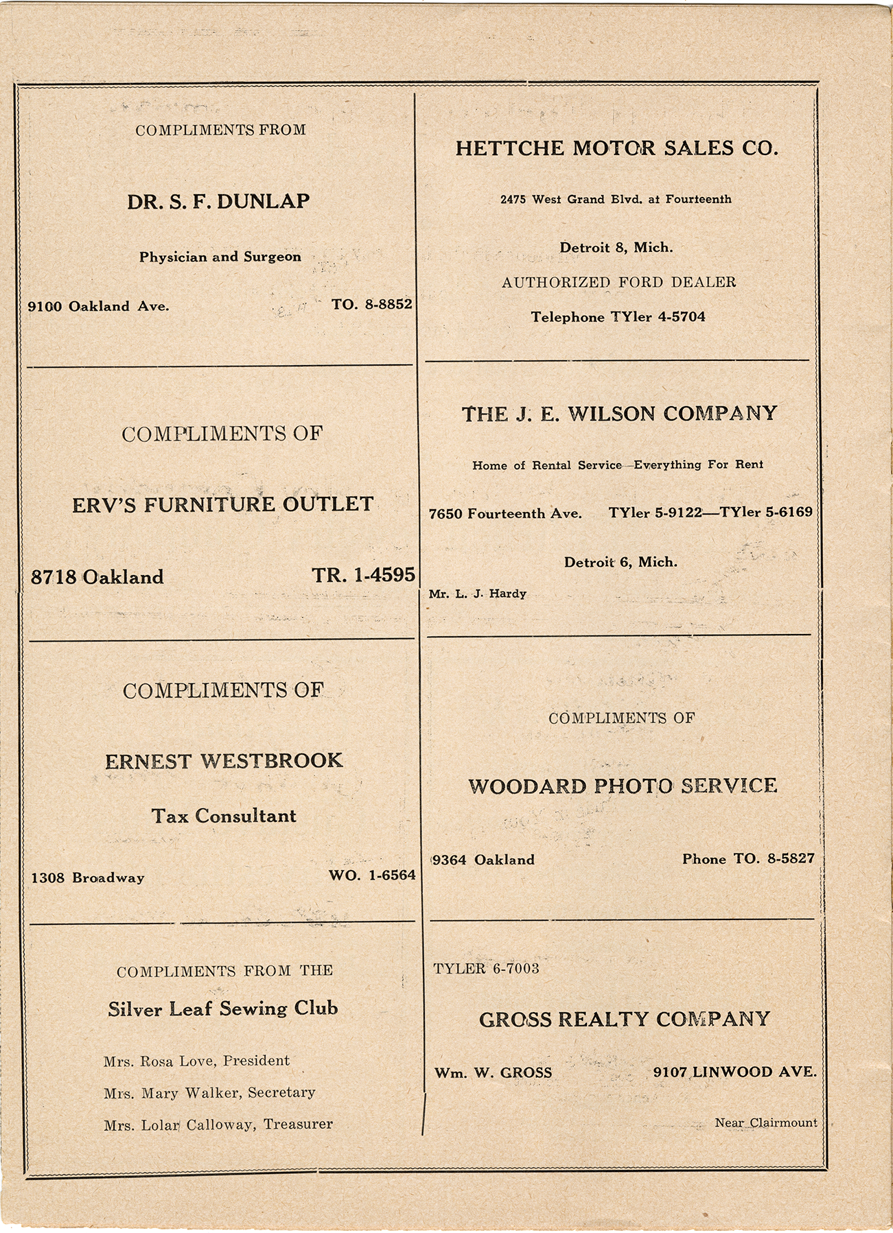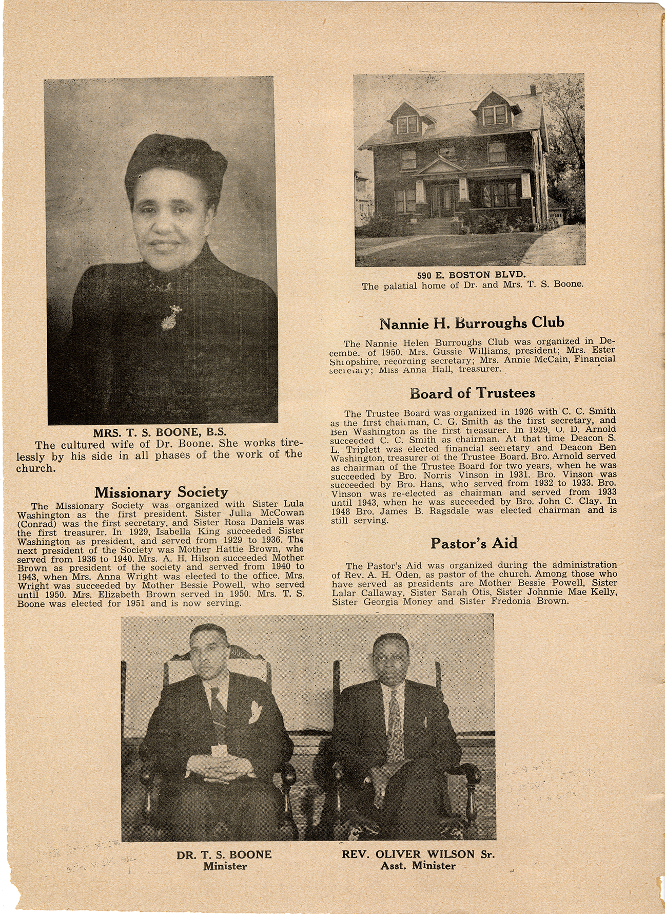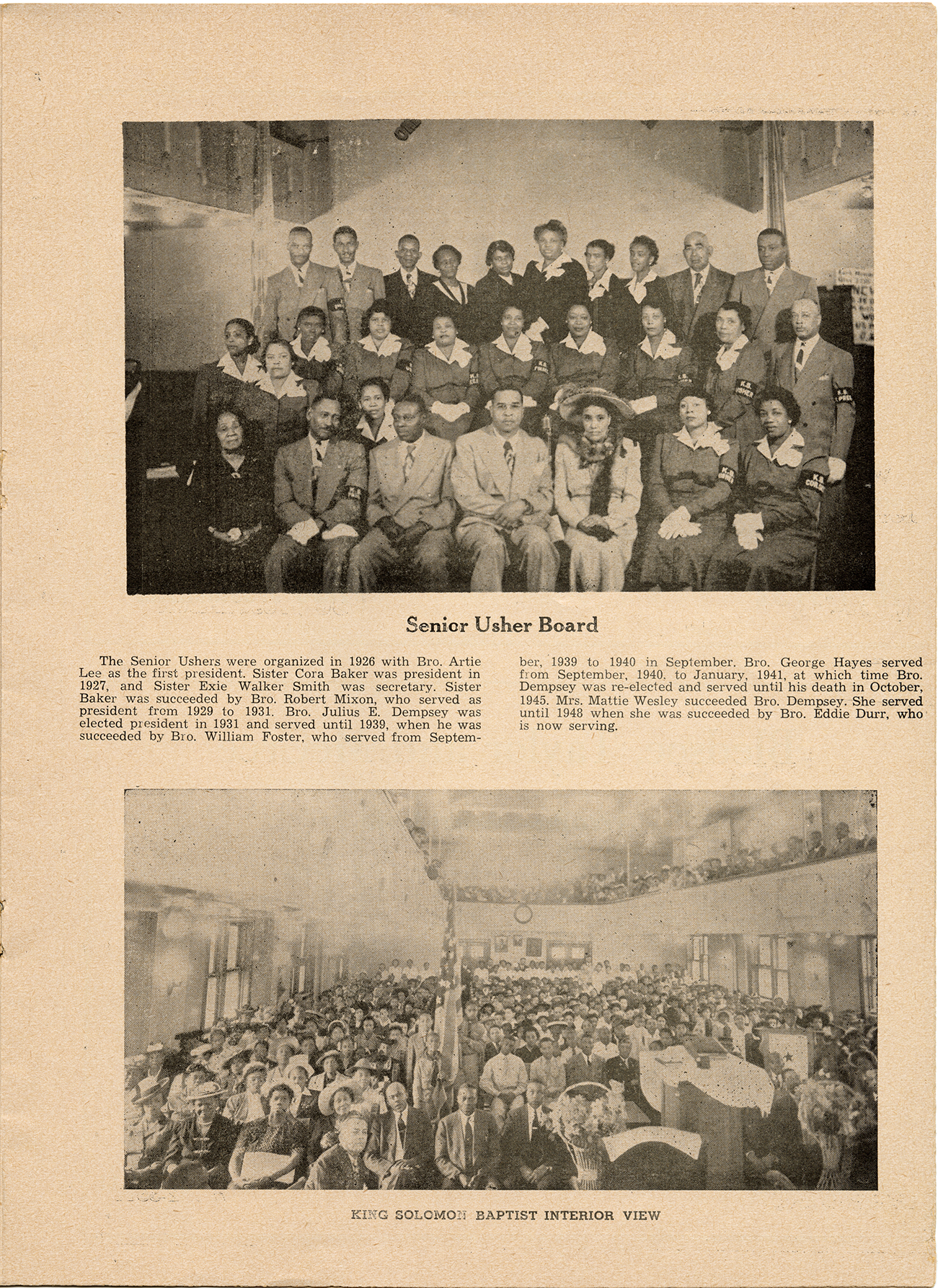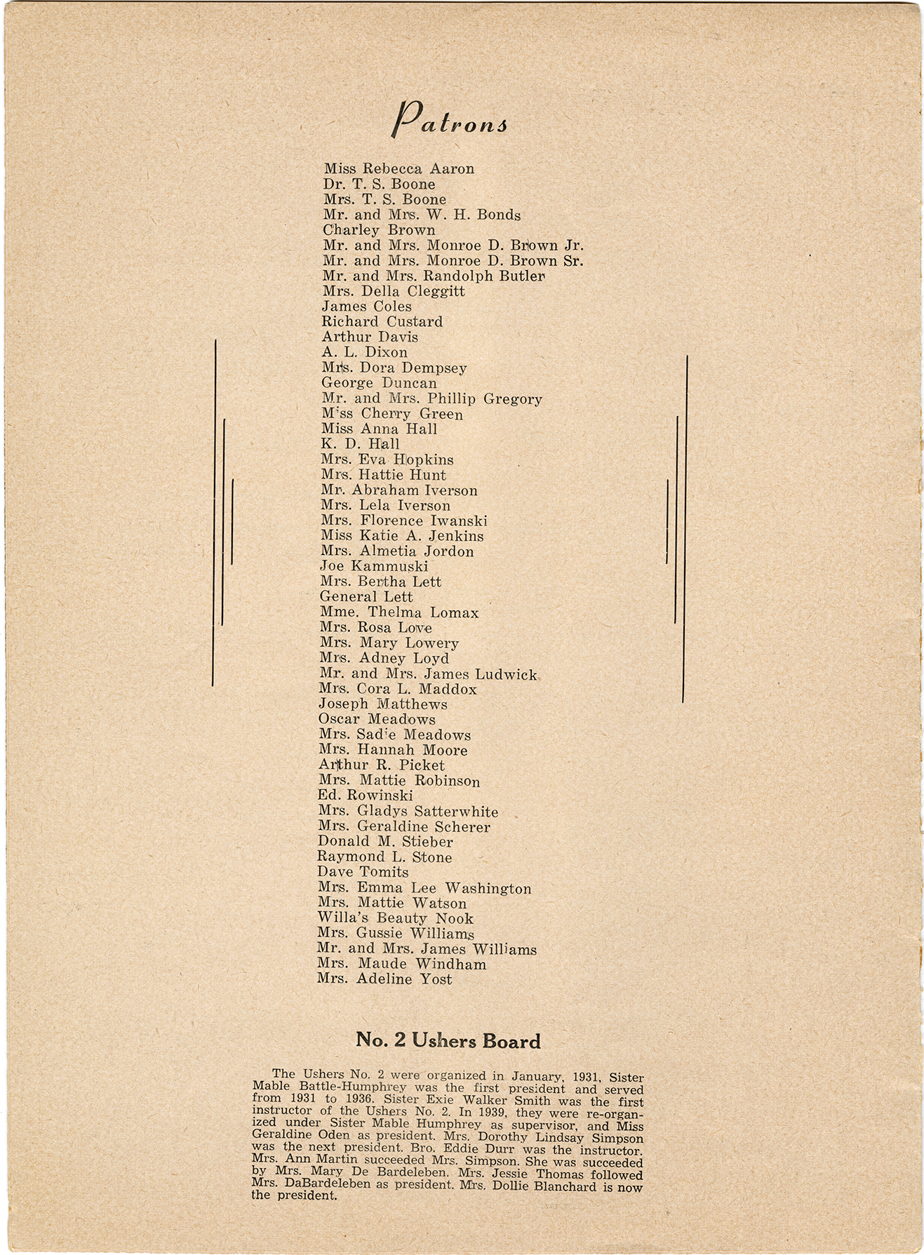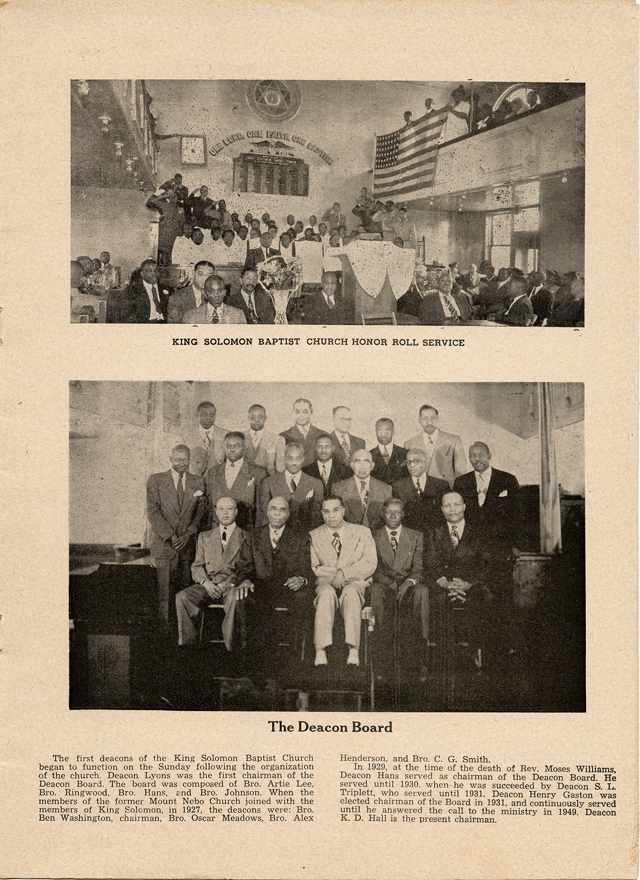 Includes church history, board members, personnel, program and advertisements from local businesses.
