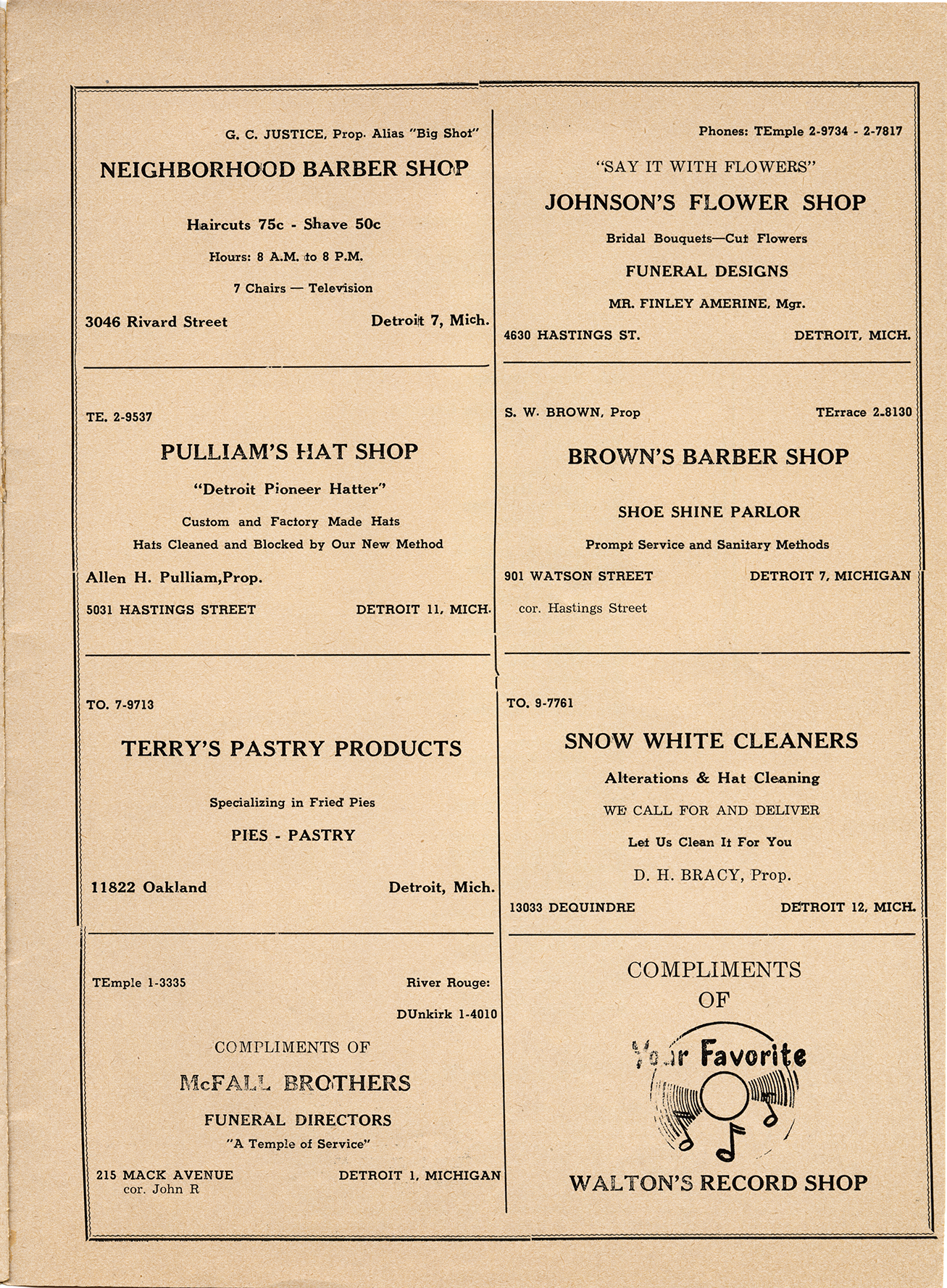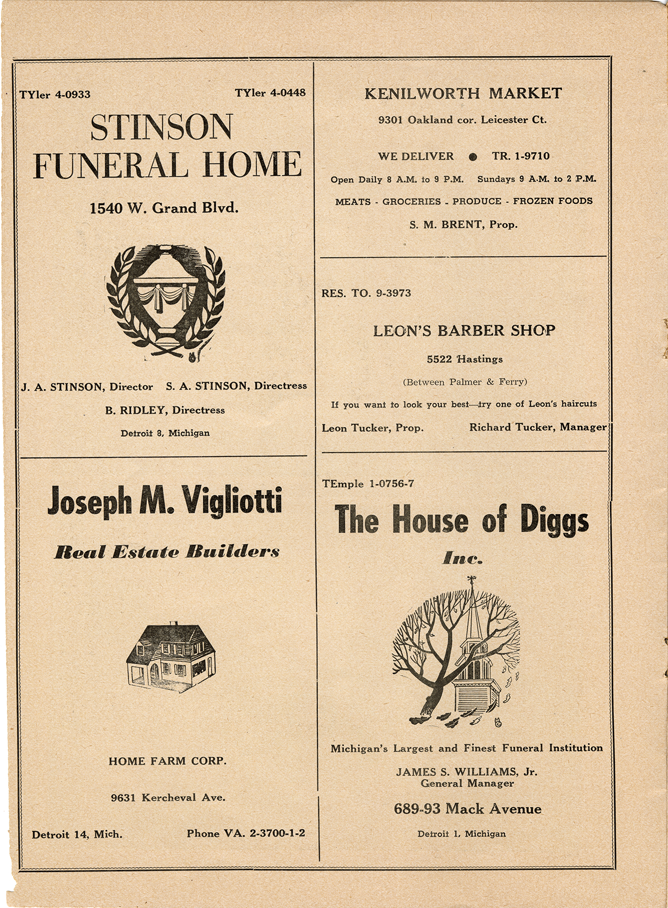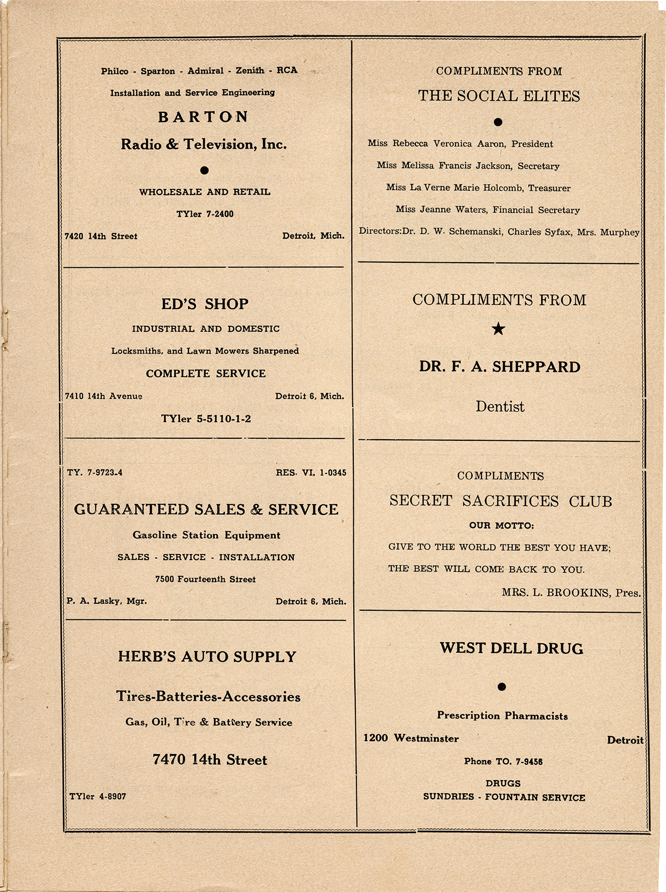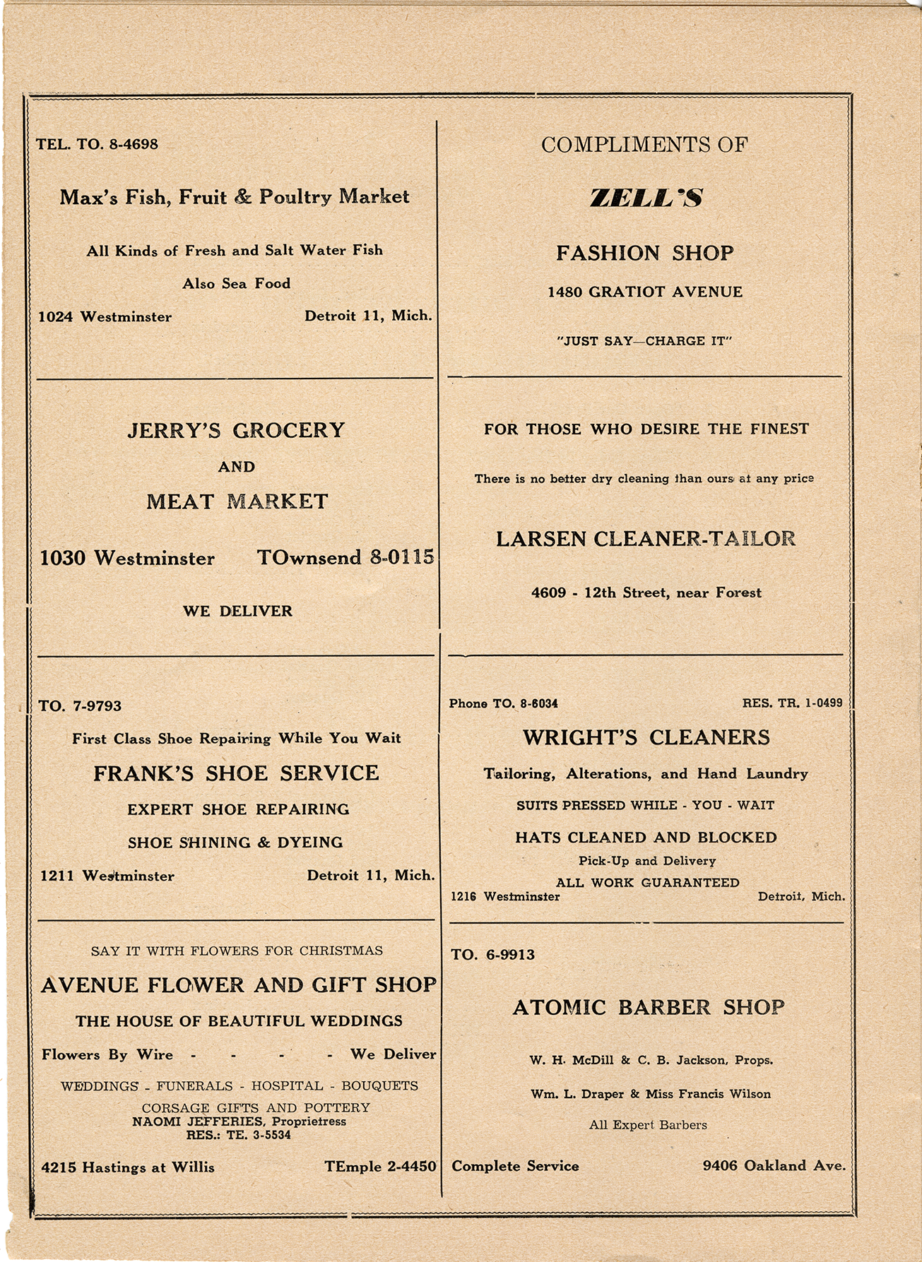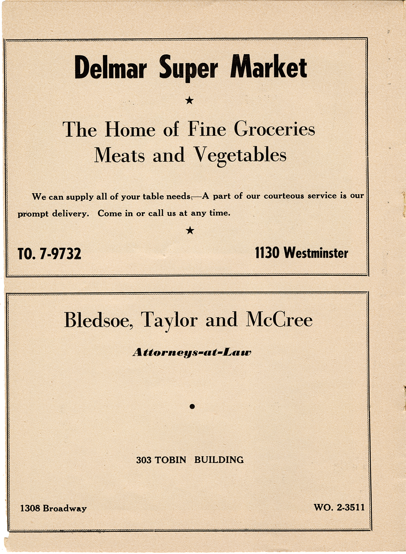 Includes church history, board members, personnel, program and advertisements from local businesses.