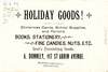 View of an advertising card for A. Donnely, depicting roses. Printed on back: "Holiday goods! Christmas cards, school supplies and notions. Books, stationery, fine candies, nuts, etc. Gent's furnishing goods. A. Donnely, 117 St. Aubin Avenue."