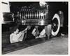 Assembly line workers bolting bumper on DeSoto automobile