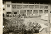 Automobile chassis and tires in front of Chalmers Motor Company factory
