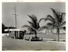 Automobile pulling a Covered Wagon trailer, Miami, Florida