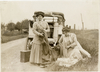 - Blanche Stuart Scott and Miss Phillips packing suitcase on roadside, 1910 New York to San Francisco tour