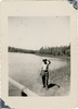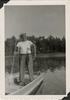 - Fisherman posing with fishing pole and fish, Idlewild resort community, Idlewild, Michigan