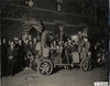 Four costumed men in automobile decorated for 1908 automobile carnival, New York