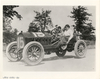 Fred Belcher and passenger posing in Knox racecar, 1909 Lowell road race