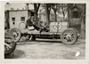 Fred Belcher and Al Denison in racecar, 1909 Crown Point races