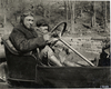 George Robertson and passenger in racecar, 1908 Vanderbilt Cup races