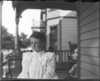 - Girl posing on lawn in front of wooden-frame house, Lexington, Michigan