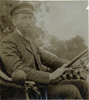Hubert LeBlon in Thomas racecar, 1906 Vanderbilt Cup races