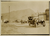 Hupmobile automobile leading automobiles through town, Hupmobile United American Tour