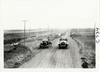 - Hupmobile automobile passing mule-drawn road graders on rural road, Hupmobile United American Tour