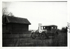 - Hupmobile automobile passing log cabin on roadside, Hupmobile United American Tour