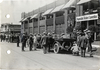 Hupmobiles in front of Tudor style commercial building on Woodward Avenue