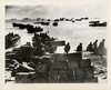 International Harvester diesel crawler tractor with bulldozer pulling landing barge onto beach