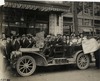 - J.N. Searles in the White Steamer car arriving at Ft. Dodge, Iowa at the 1909 Glidden Tour