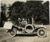 - J.M. Murdock and family posing in Packard automobile, 1908 Packard Transcontinental Tour