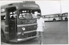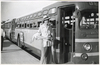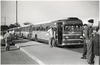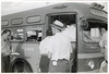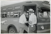 Jeff Robbins watching passengers boarding Greyhound bus, Hazel Park Raceway
