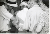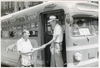 Jeff Robbins purchasing newspaper from George next to Greyhound bus, Detroit
