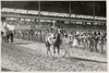 - Jockey Tommy Barrow riding horse from paddock on way to track, Michigan Racing Association racetrack