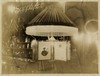 Lamp with display rack of framed photographs and documents, 1909 Chicago Auto Show