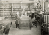 Librarian behind desk, Centre Park Library, Detroit Public Library