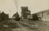 - Locomotive and freight cars in front of Butternut Elevator Co., Butternut, Michigan