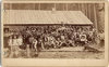 Logging crew in front of long building