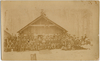 Logging crew in front of lumber shed