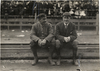 - Louis Wagner and Mr. Fields sitting on edge of pits, 1908 Grand Prize races